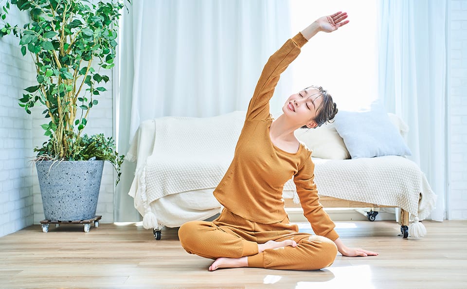 疲れが翌日に残らない程度の軽い運動を行いましょう。ウォーキングやジョギング・ヨガ・ストレッチなどがおススメです。